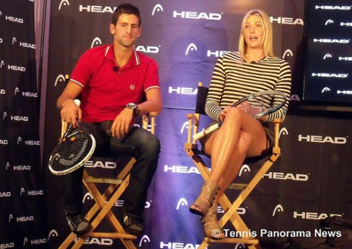 Djokovic colocou uma peruca loira e participou de um comercial de televisão, para uma marca esportiva. Ele imitou até os movimentos da tenista russa.